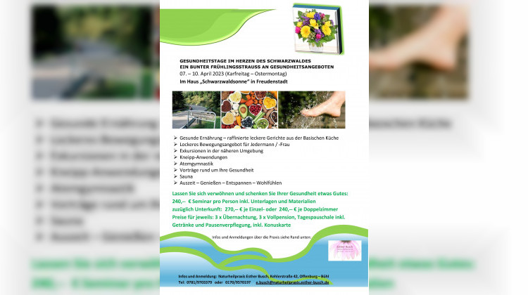 Infos und Anmeldung: Naturheilpraxis Esther Busch, Kehlerstraße 42, Offenburg – Bühl