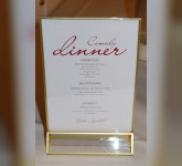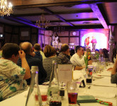 Neben den Lachern kam auch der kulinarische Genuss nicht zu kurz. Das Drei-Gänge-Menü wurde von Raoul Paschold, Inhaber & Küchenchef, mit seinem Küchenteam gestaltet und zubereitet. Die leckere Vorspeise bestand aus Meerrettich-Suppe im Glas mit Lachstatar, rotem Linsensalat, Ziegenkäse, Rote Bete Würfel und Feldsalat. Der Hauptgang: Schweinefilet im Blätterteig, Kartoffelbaumkuchen, Erbsen- & Karottenpüree. Feine Mousse-Variationen schlossen das fürstliche Diner süß ab.