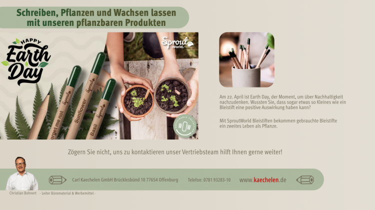 Der Moment, um über Nachhaltigkeit nachzudenken. Wussten Sie, dass sogar etwas so Kleines wie ein Bleistift eine positive Auswirkung haben kann? Mit SproutWorld Bleistiften bekommen gebrauchte Bleistifte ein zweites Leben als Pflanze.